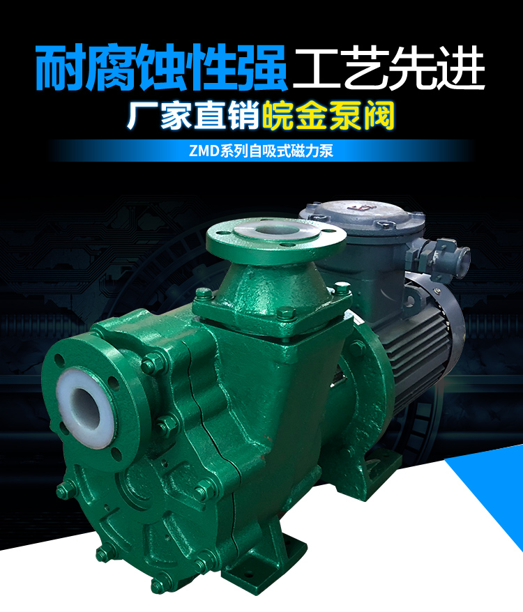 ZMD自吸式磁力驱动泵,是自吸泵与磁力泵的组合。采用磁力耦合传动,不存在动密封点。因此即能解决了一般轴传动式离心泵轴封外跑、冒、滴、漏的现象。