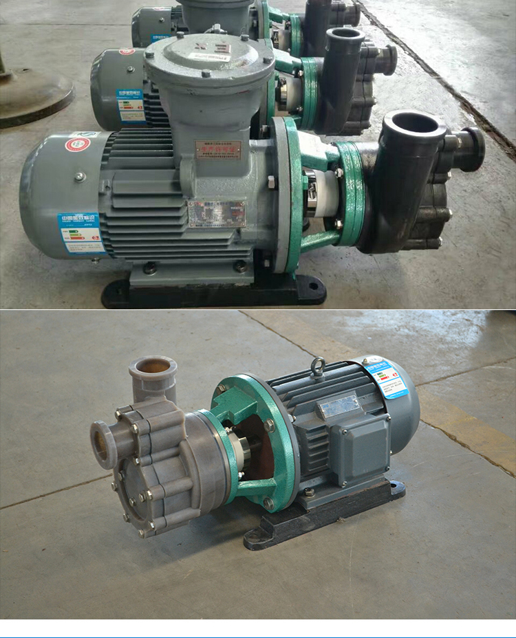 氟塑料磁力泵又称其为氟塑料磁力离心泵、衬四氟磁力泵、氟塑料磁力驱动泵、耐腐蚀磁力化工泵,CQB-FJ衬氟磁力泵是我公司氟塑料磁力泵中的全新升级款型。氟塑料磁力泵另有:CQB-