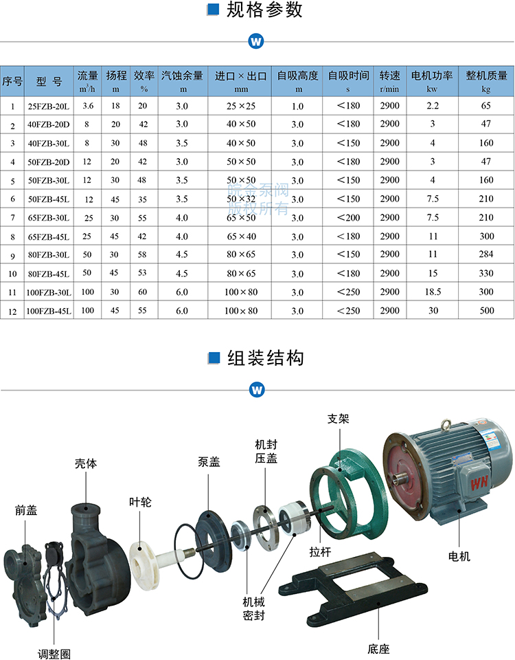 FZB氟塑料离心自吸泵又叫衬氟自吸泵过流部件均采用氟塑料制成,轴封采用机械密封,对于输送含杂质颗粒介质时,可配用无冷却水单端面硬对硬(碳化硅对碳化硅)机械密封,所以用户选型时需考虑到介质中的固体含量,方便可调。运行过程中免去了普通离心泵须倒灌安装、灌引水、装底阀等不便因素。这种防腐自吸泵广泛用于酸洗工艺、制酸制碱、化工、造纸、电子等行业。
